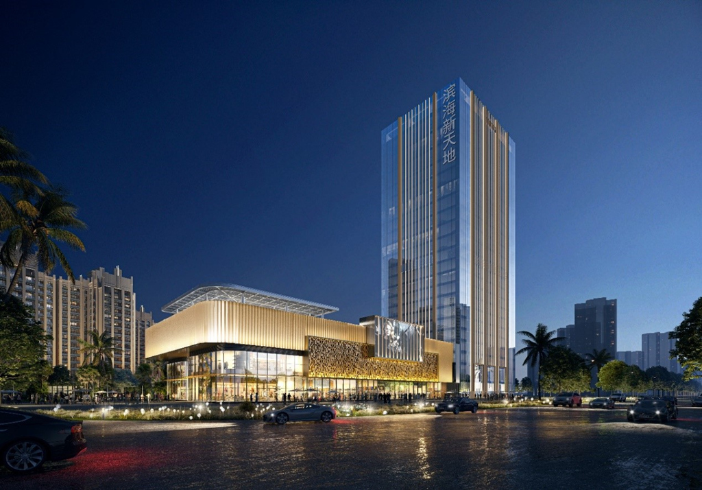 中國電建大灣區科創(chuàng)中心基地位于廣東省廣州市花都區,是由中電建(廣州)城市投資發(fā)展有限公司投資開發(fā)建設。該項目幕墻形式主要包括玻璃幕墻、鋁板幕墻等,總建筑面積約為62000平方米,幕墻面積38000平方米,建筑高度為162 1米。該項目是一棟超高層辦公樓,建成后將打造成為具備總部基地的地標性建筑。海口濱海新天地商業(yè)綜合體 位于海南省海口市,是由